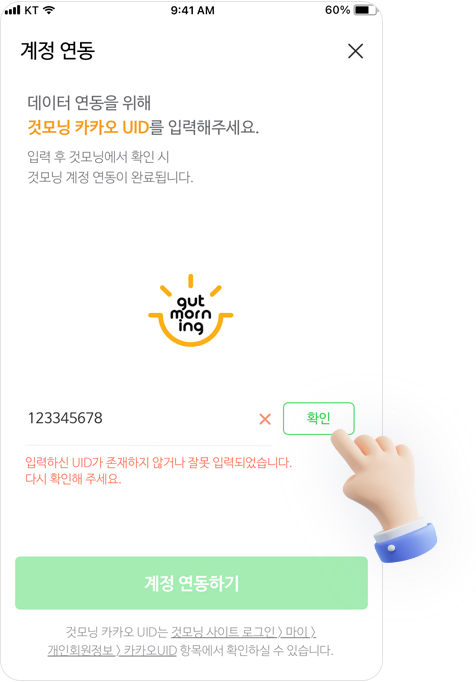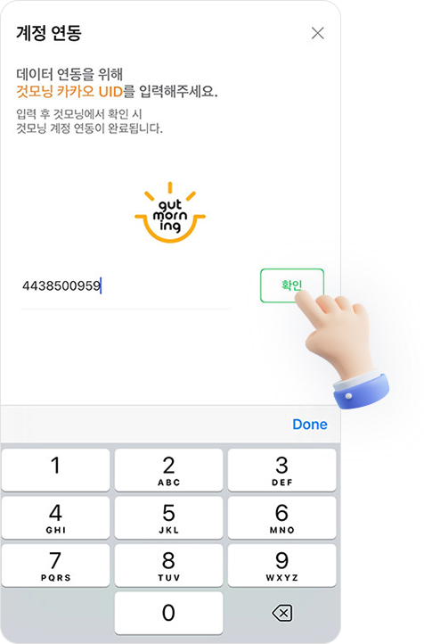 Step 4 바디키 APP 내 것모닝 UID 인증 완료 후,
