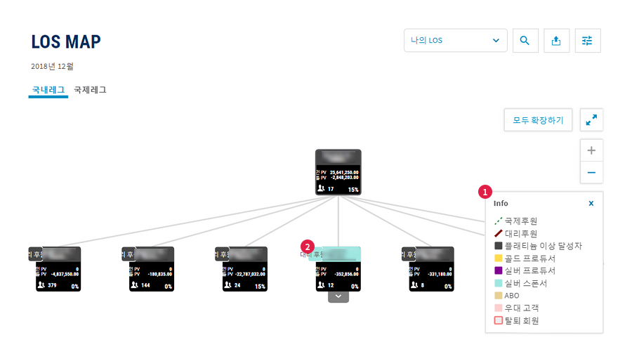 - 1.3 트리뷰 : LOS MAP에서 하위회원의 LOS를 확장할 수 있어, 원하는 LOS를 상세히 확인할 수 있습니다.