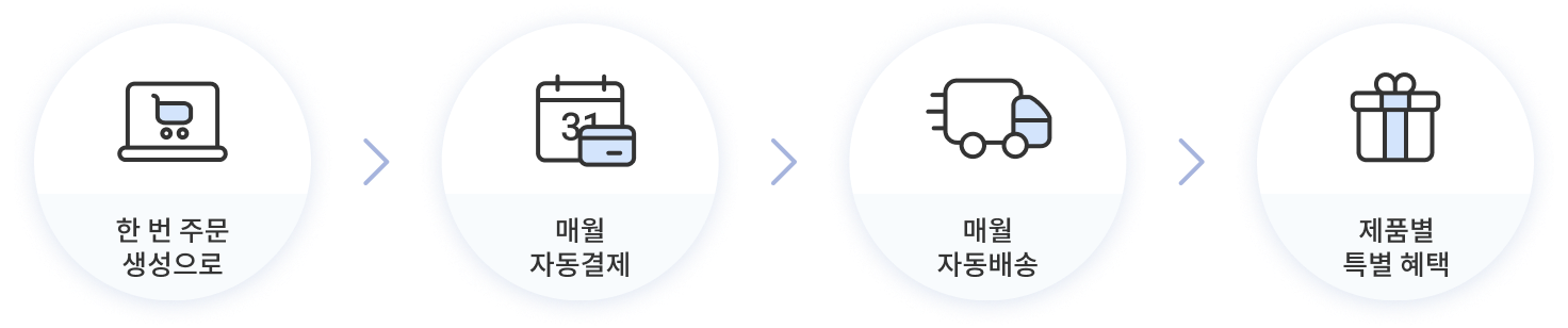 한번 주문 생성으로, 매월 자동결제 및 배송되는 편리한 정기구매 경험을 체험해보세요!